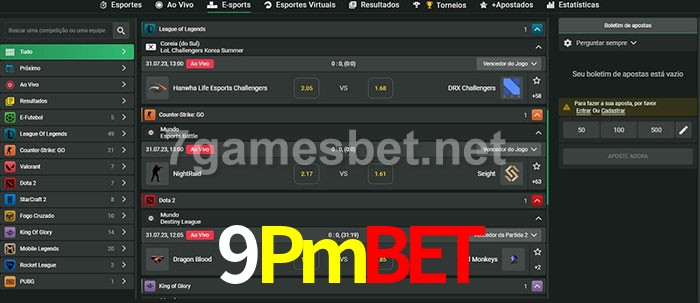 O 9Pmbet oferece uma grande seleção de opções de apostas em e-sports com probabilidades competitivas